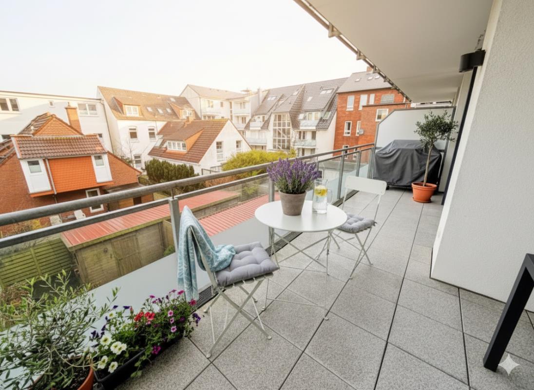 Exklusive 3-Zimmer-Eigentumswohnung mit 2 Bädern und umlaufender Westterrasse im Herzen von Norderney