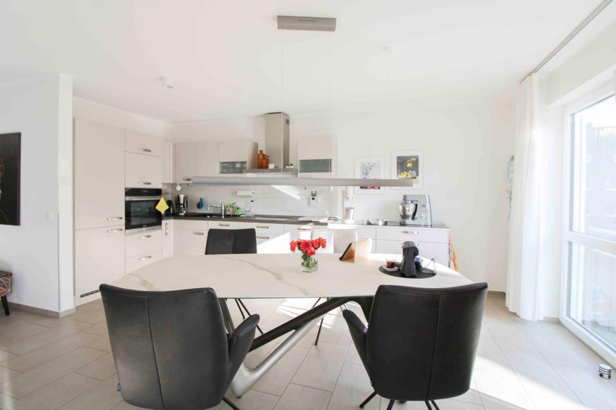 Auf einer großzügigen Wohnfläche von ca. 101 m² erwartet Sie ein durchdachter Grundriss mit hochwertiger Ausstattung. Der Mittelpunkt der Wohnung ist der weitläufige, offen gestaltete Wohn- und Essbereich mit Einbauküche sowie einer großzügigen Glasfront, die für viel Helligkeit und ein angenehmes Raumgefühl sorgt. Zwei gut geschnittene Schlafzimmer bieten ausreichend Platz für individuelle Nutzungsmöglichkeiten. Das stilvolle Tageslichtbad ist mit einer großen, begehbaren Dusche ausgestattet; ein separates Gäste-WC ergänzt den Komfort. Besonders praktisch ist der geräumige Hauswirtschaftsraum innerhalb der Wohnung, der zusätzlichen Stauraum bietet und den klassischen Kellerraum ersetzt.