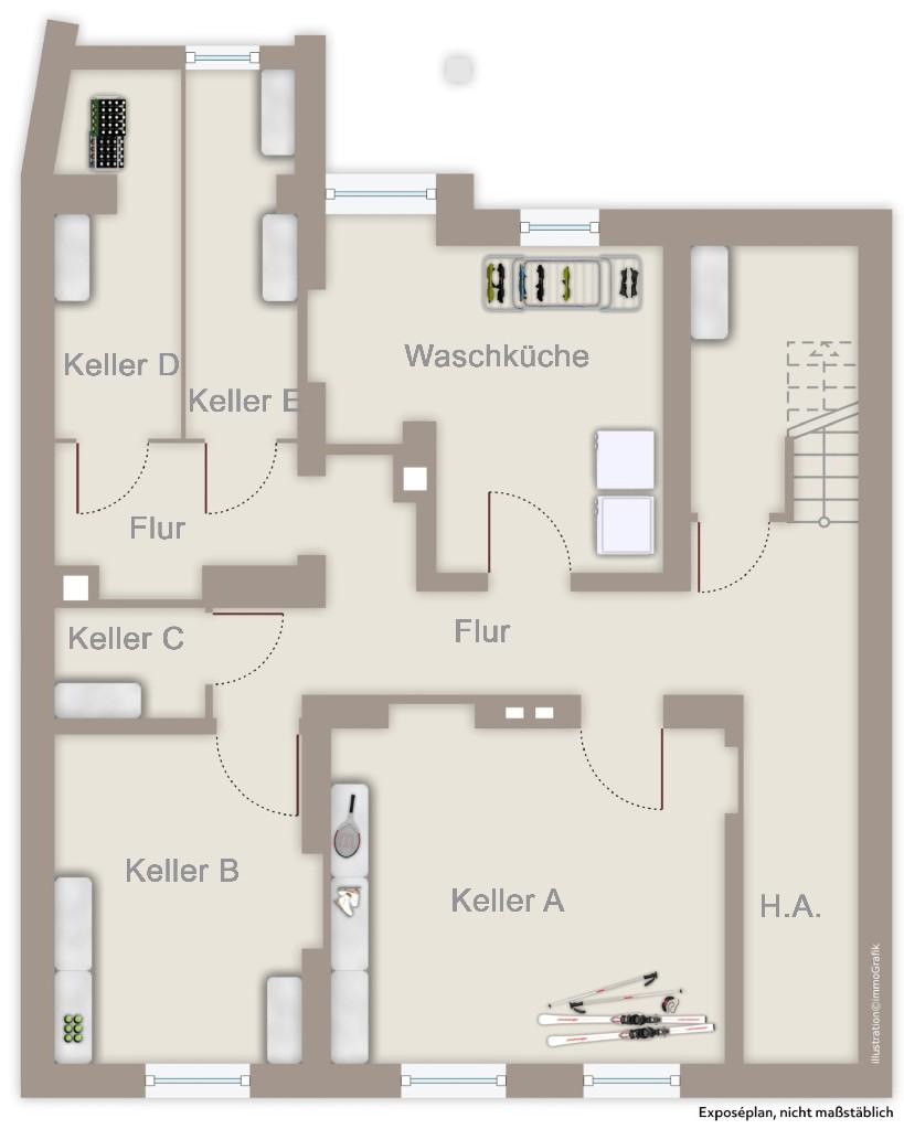 Das Haus verfügt über einen großen Waschkeller. Zu jeder Wohnung gehört ein Kellerraum. Zusätzliche Einbauschränke in Küche und Flur sind vorhanden. Da im Rahmen der Modernisierung Zwischendecken eingezogen wurden, ist neben dem Kellerraum noch zusätzlicher Stauraum vorhanden. Es liegt ein positiver Energieausweis für die Immobilie vor.