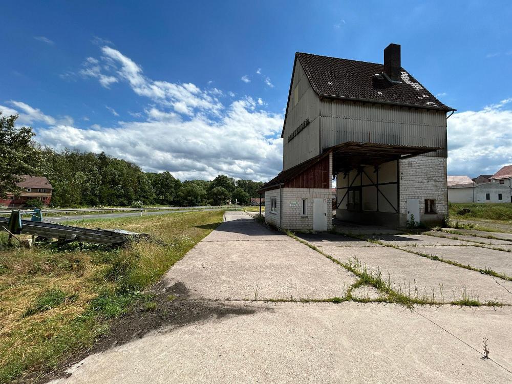 Auf dem Grundstück mit einer Größe von 2.508 m² befindet sich eine bisher genutzte Lagerhalle (BJ 1980), mit einer Größe von 15,50m x 24,00 m (ca. 372 m²) und ein weiteres kleines Lagergebäude mit Wiegebüro, welches massiv errichtet wurde.