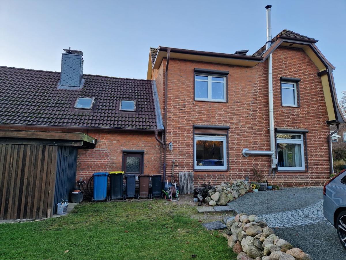 Über die einladende Diele gelangen Sie in die Wohnküche und den hellen Wohn-Essbereich (mit Ofen). Im Obergeschoss des vorderen Gebäudeteils steht Ihnen ein modernes Duschbad, ein Kinderzimmer sowie ein Schlafzimmer inkl. Ankleidezimmer zur Verfügung. Dieser vordere Gebäudeteil mit insgesamt ca. 105m² Wohnfläche ist somit ohne großen Renovierungsaufwand sofort zu beziehen.