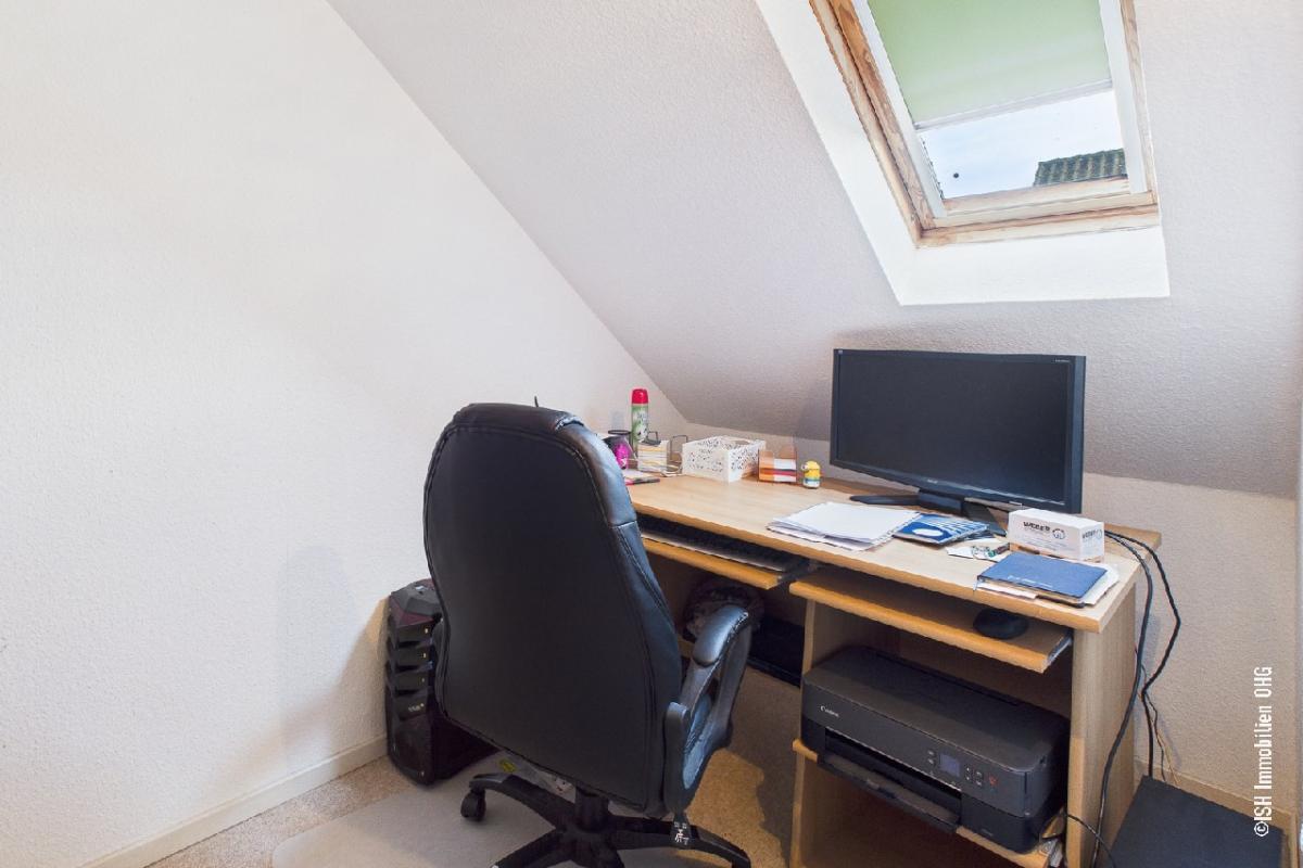 Im Dachgeschoss befinden sich zwei sehr großzügige Schlafzimmer, ein kleines Büro und ein WC. Alle Räume verfügen durch Dachfenster oder Erker über genügend Lichteinfall und wirken sehr einladend. Auf dem Flur im Dachgeschoss ist zudem noch ein praktischer Einbauschrank verbaut, der viel Staufläche bietet. Auch der Spitzboden bietet weitere Lagermöglichkeiten für die Dinge, die nicht alltäglich gebraucht werden.