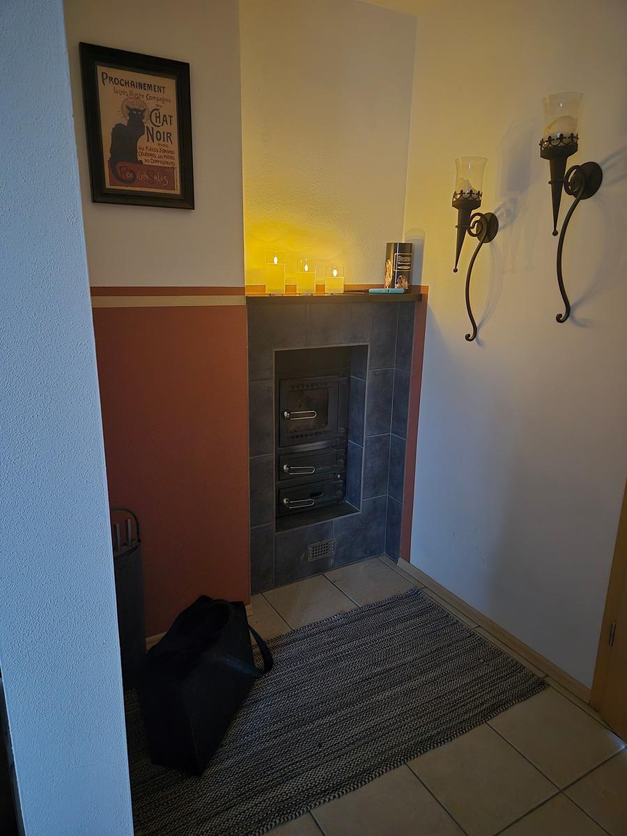 •Hochwertiger Holzofen im Wohnzimmer für behagliche Wohnatmosphäre