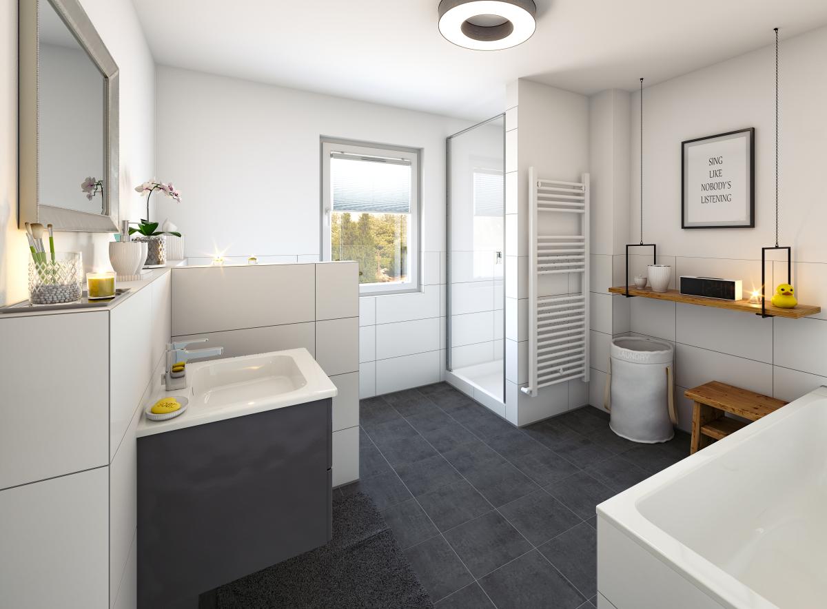 • Sanitärausstattung: Ihre Badezimmer sind voll ausgestattet. Dazu gehört auch eine bodengleiche Dusche.