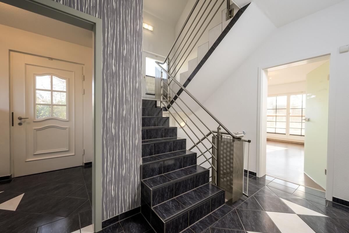 - Treppe mit Edelstahlgeländer