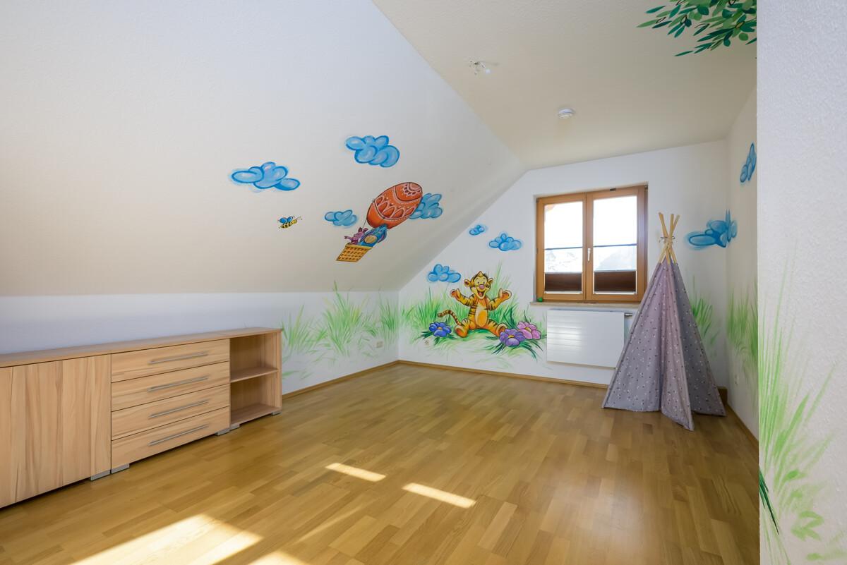 - Parkettböden in Kinder- und Schlafzimmer, Teppichböden aufgelegt