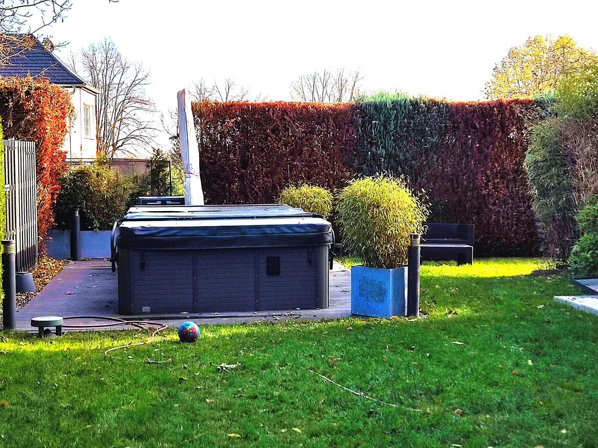 Die Einbauküche und Einbaumöbel, das Mobiliar im Ankleidezimmer, Badmöbel und der Familien-Yacuzzi im Garten sind im Preis inklusive.