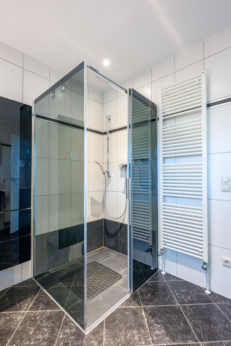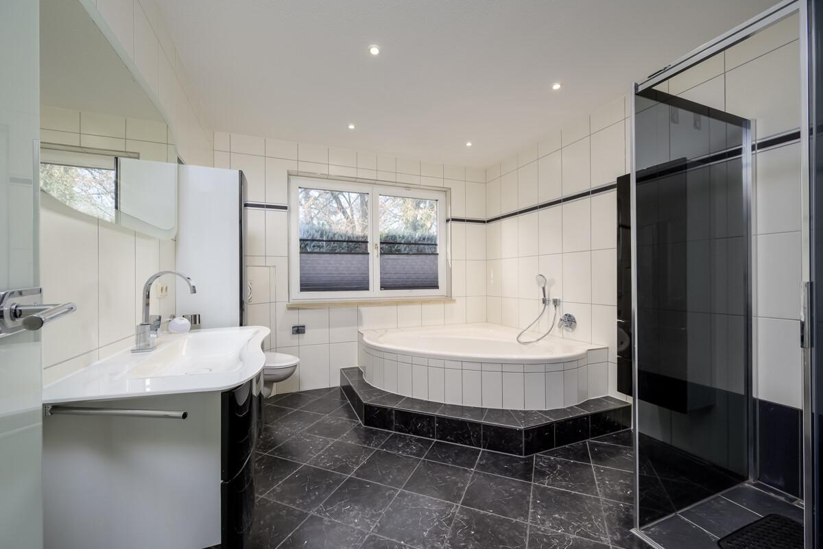 - Familienbad im EG mit Eckwanne und bodengleicher Glas-Dusche