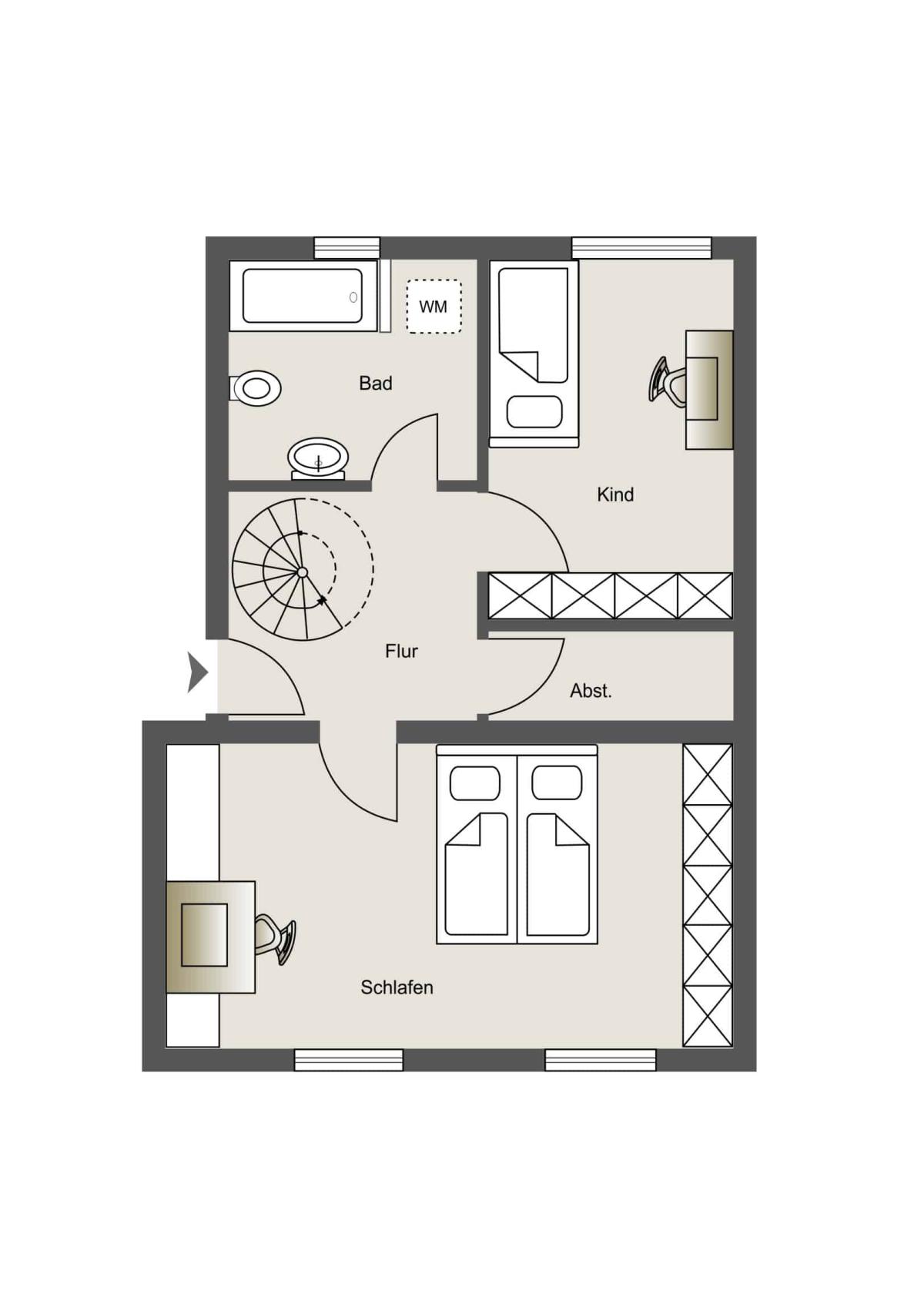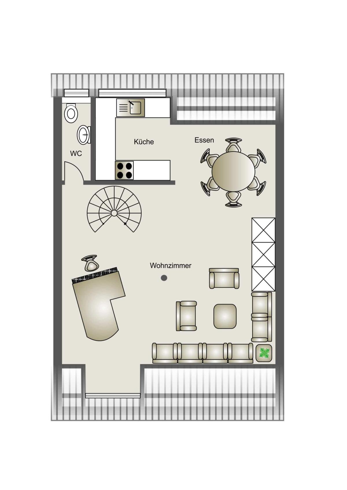 Die Maisonette besteht aus drei Zimmern, die ideal für ein gemütliches Wohnen, Arbeiten und Entspannen sind.