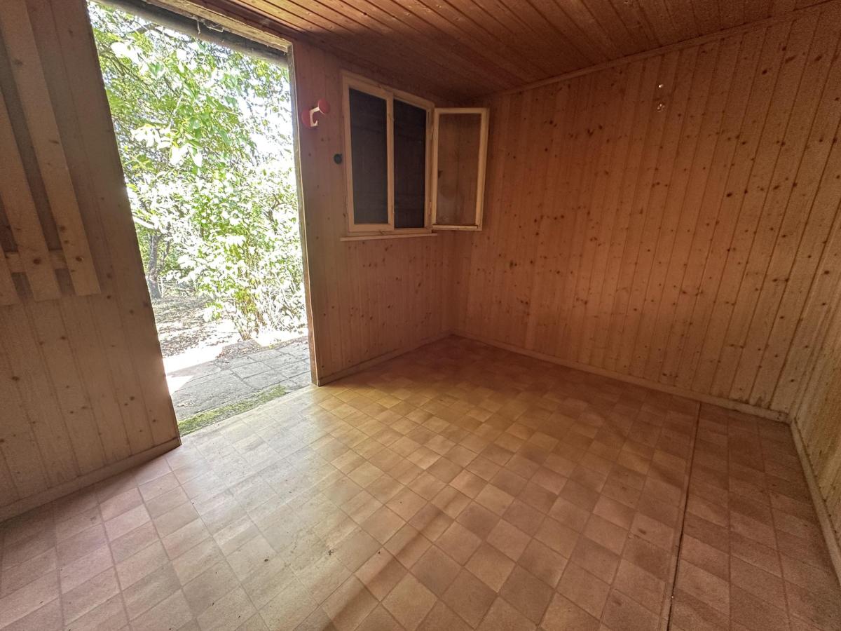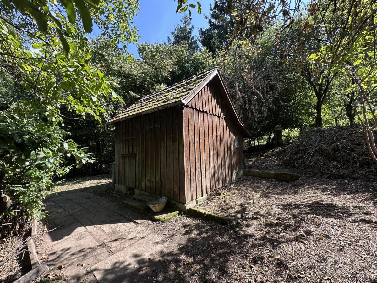 - Freizeithütte mit dahinterliegendem Geräteschuppen