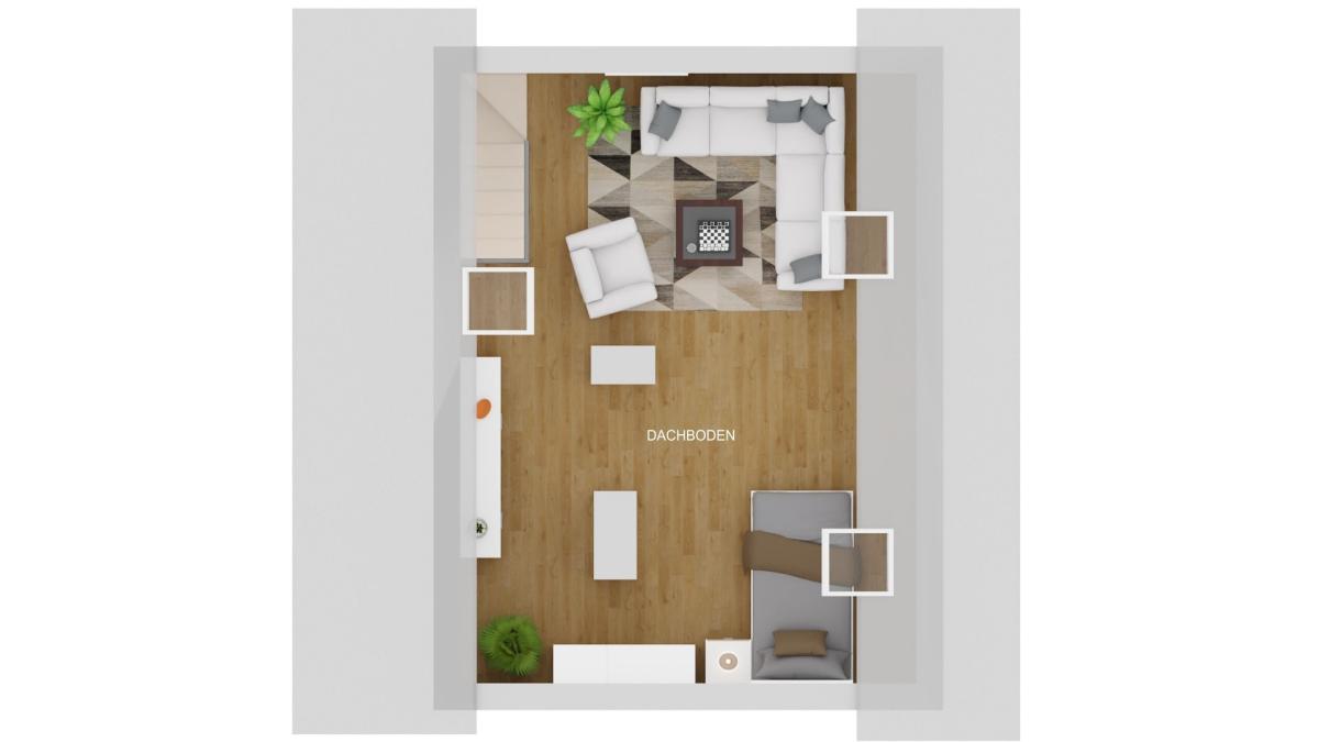 Über eine platzsparende Raumspartreppe im Wohnbereich gelangen Sie in das ausgebaute Dachgeschoss, das sich ideal als Büro oder zusätzlicher Schlafraum nutzen lässt.