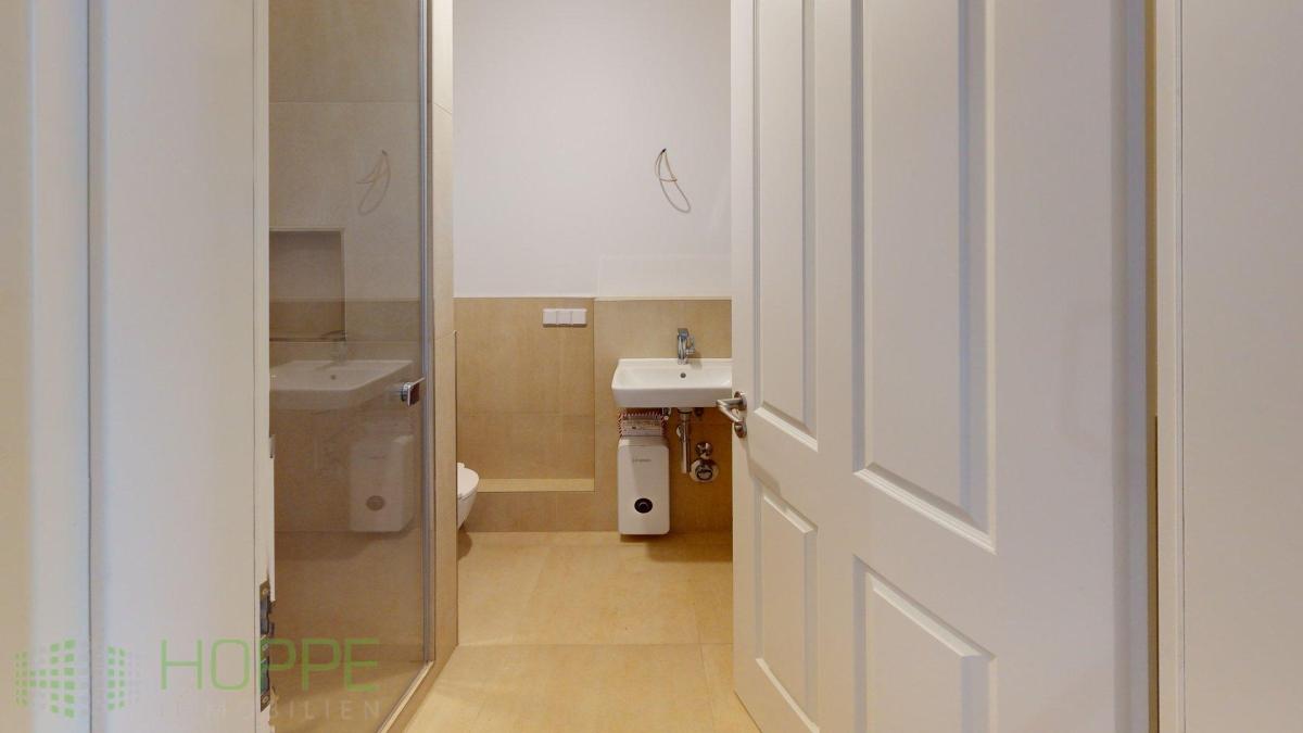 Die Bäder sind in zeitlos schlichter, moderner Ausstattung gestaltet und bieten einen angenehmen Kontrast zur historischen Bausubstanz. Sie verbinden hochwertige Materialien mit funktionaler Klarheit und sorgen für zeitgemäßen Komfort im täglichen Gebrauch.