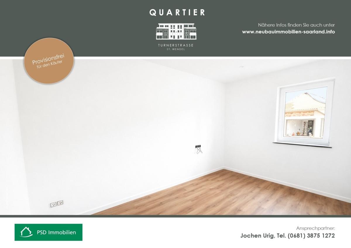 Möchten Sie sich schon bald den Traum von den eigenen vier Wänden erfüllen? Dann sind Sie im QUARTIER TURNERSTRASSE I ST. WENDEL goldrichtig. Die moderne Architektur richtet sich an Menschen, die einen individuellen Wohnstil, klare Linien, viel nutzbare Wohnfläche und einen hohen Ausbaustandard schätzen.
