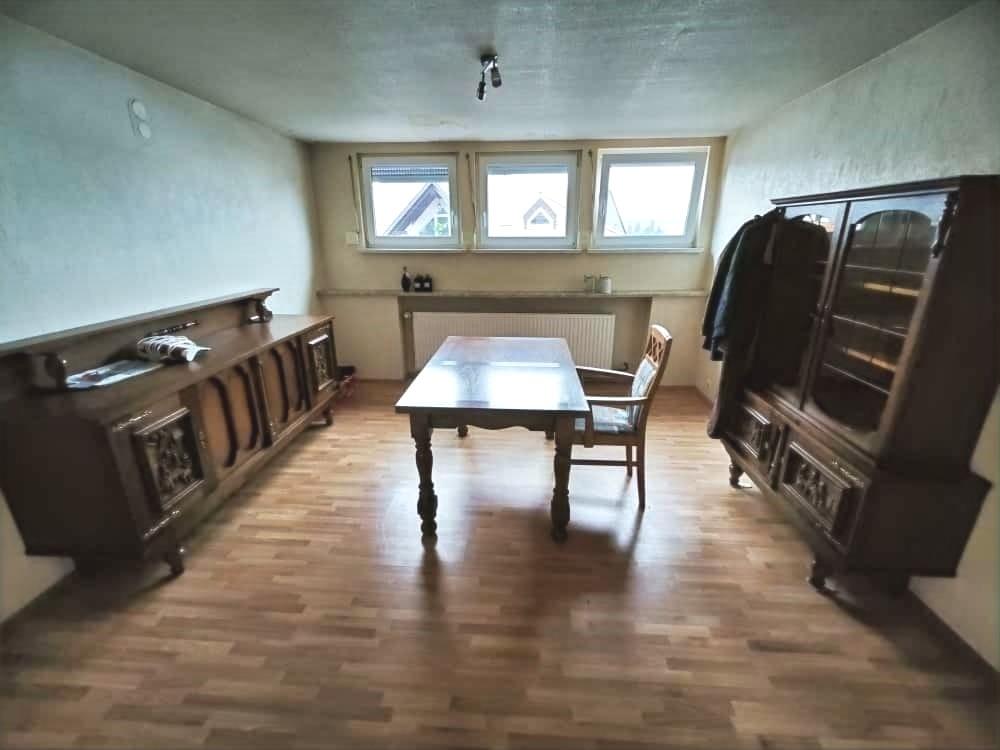 Im Erdgeschoss erwartet Sie eine wohnliche Aufteilung, die bereits viele Möglichkeiten für das Familienleben bereithält. Ein heller Flur führt in verschiedene Zimmer, die flexibel nutzbar sind – sei es als Arbeits-, Spiel- oder Gästezimmer. Das Esszimmer bietet einen zentralen Treffpunkt für gemeinsame Mahlzeiten, während die Küche als Herzstück der Etage durch eine Modernisierung zur modernen Familienküche umgestaltet werden kann. Ein großes Wohnzimmer schafft Platz für gesellige Abende, und ein Schlafzimmer mit direktem Zugang zum Balkon bietet Rückzugsmöglichkeiten. Ergänzt wird das Erdgeschoss durch ein Badezimmer.