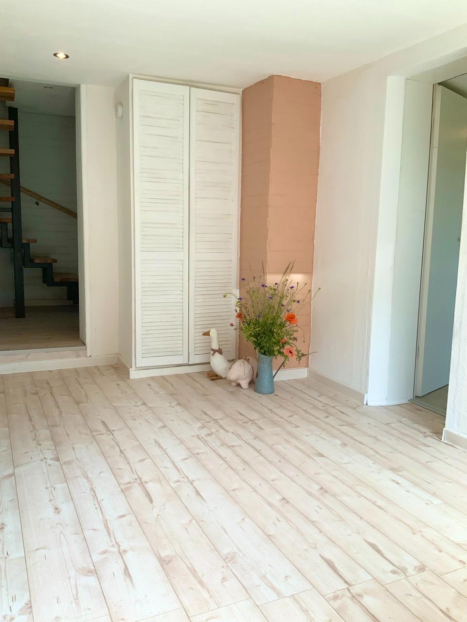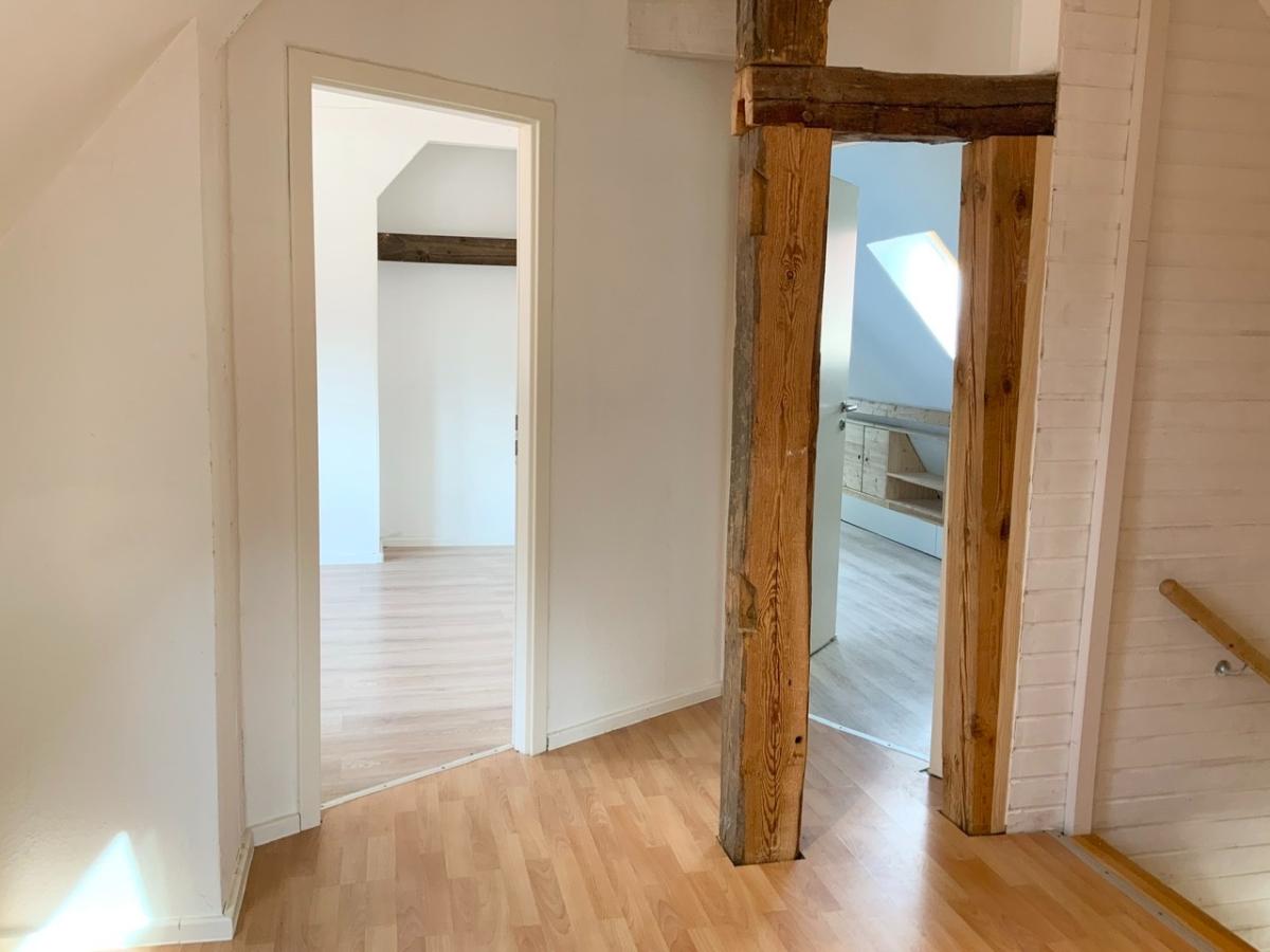 Im Erdgeschoss liegt außerdem noch ein schönes, helles Eckzimmer und ein kleiner Flur, welcher über eine offene Holztreppe zum Dachgeschoss führt.