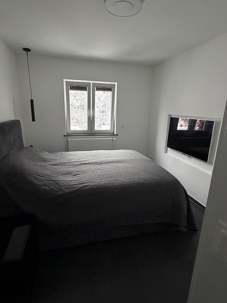 Im Obergeschoss befinden sich ein Schlafzimmer mit einem Einbauschrank, ein großzügiges Badezimmer mit Dusche und Badewanne, sowie ein kleines Gästezimmer.